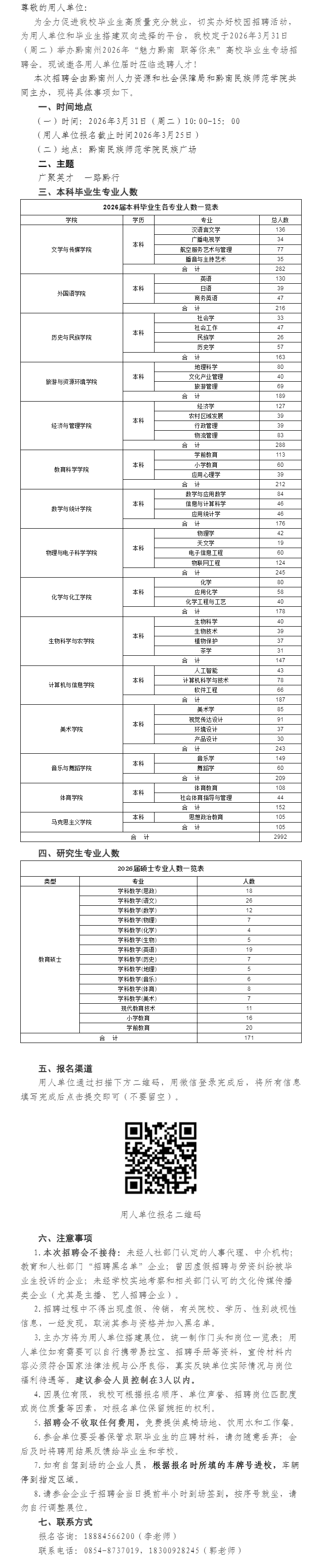 黔南民族師范學(xué)院2026屆畢業(yè)生“魅力黔南 職等你來”高校畢業(yè)生專場招聘會(huì)邀請函